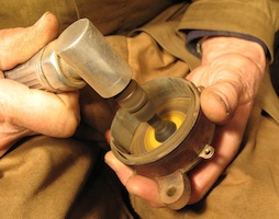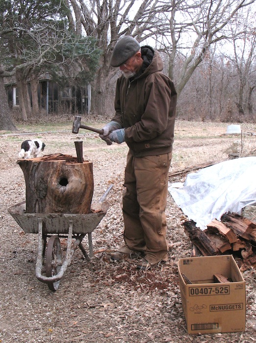 December 29, 2014 This morning I got on the phone to the company that made the valve on my splitter, trying to get a model number and look up repair information. I talked to one of the head guys and got his email address so I could send him pictures, and eventually he figured out which valve it is. But who made the pump and the rest of the splitter remains a mystery. Finally he gave me contact info for a repair service in Tulsa, so I'll talk to them tomorrow and see if they can be of any help. I made a trip to town and bought more spackle, but it occurred to me that with some arctic entertainment expected to blow in here tomorrow and bring single-digit temperatures, I'd better build up the wood supply enough to last a few evenings. Splitting firewood the old way, with a hammer and wedge, is a lot slower than using the splitter, so that used up the rest of my afternoon. Maybe I can get the rest of the spackling done tomorrow. Tuesday, December 30, 2014 With a morning start at 18º and a high of only about 24º, I decided to skip spackling until the weather warms up. I doubt that I could have got the temperature in that middle room up to the required 50º minimum, and I didn't want to burn up the gas trying. Instead I read the new Vintage Ford that arrived in yesterday's mail, did some sorting and putting away in the shop, shot some pictures for a Model T pal who is making parts drawings, and improved the jack adapter I made for lifting rear axles. I cut rubber from an old inner tube and glued it onto the adapter as padding to keep it from scratching the paint when lifting. I never went off the place today, but I'll have to go into town tomorrow for some bill paying. |
