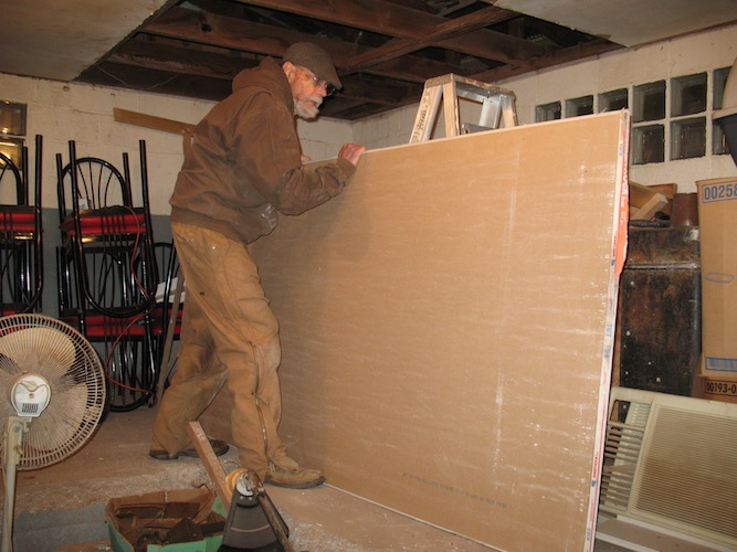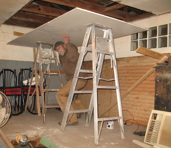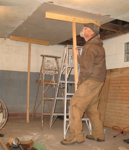 December 20, 2014 Today I installed the new ceiling in the middle room of the shop building. I worked on it most of the day, with occasional breaks in the heated end of the building to warm up and wipe my nose. Eventually I'll have heat in the rest of the building, but for now the middle and east rooms are just a few degrees warmer than outdoors. Saturday is my eat-in-town night, so while I was in town I bought some spackling compound to fill the cracks. I hope to finish the ceiling during the coming week and get started building some shelves in there. By the new year I should be shelving some of the stuff that's now cluttering my shop. Sunday, December 21, 2014 I thought I might fix the splitter today, but it was not to be. I took off the pump and opened it up, but didn't find what's wrong with it. I tried to look up a manual online, but didn't have a model number to look for. The manufacturer's website suggested places to look, but I found no number. So I sent them an email with pictures of the pump and the splitter. Maybe they can identify it and I can then find a manual. Meanwhile, my firewood splitting is done the old way, with a wedge and a big hammer. |