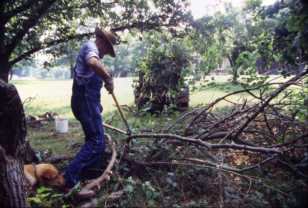 around the wood pile behind the shop and treating the stumps with