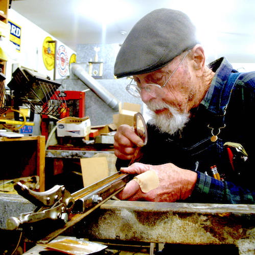 I don't light the fires in the kitchen stove and the living room fireplace until I go in the house in the evening. This time of year if the wind is blowing from the south the unheated kitchen feels cooler than the outside. Not today. The wind turned around and blew from the northwest. The 44º of ten in the morning became the freezing of five in the afternoon, headed for the low twenties overnight, so the 45º kitchen felt warm. When the weather persuades me that I should work indoors, I do it in my shop and my office where I have gas heat. Except for a trip to the pharmacy for BP pills, I spent most of the day slaving over a hot computer learning more things to do with the GIMP photo editing program. It does a lot of things, and how to make them happen is not always obvious. So learning how to do something new with it is usually slow going. Today's project was changing a photo of an Auntie Chatter sign from a low angle shot to a straight-on perspective, and putting it on a white background. I still have to learn how to correct the uneven lighting. |