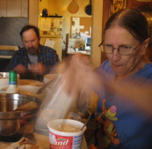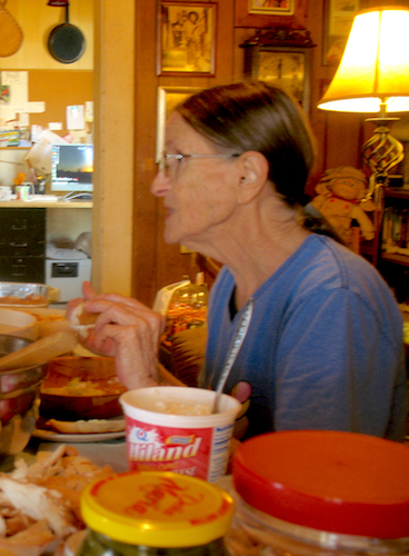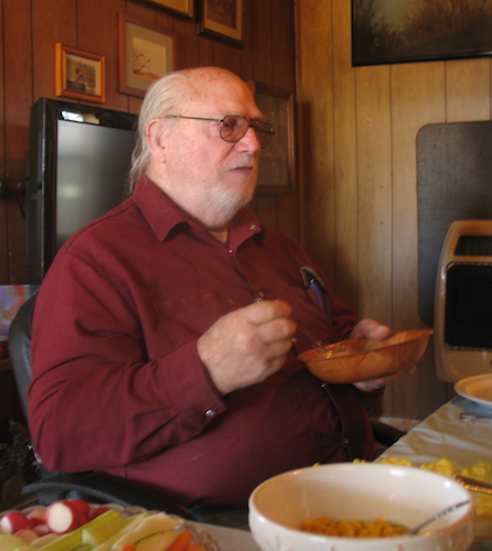 It's become pretty much of a tradition in recent years for my cousin Pete (Charlotte) Nichols to have her cousins Wally Brickey and me over to her place for dinner at Thanksgiving and Christmas. She likes to cook, and always lays out a good feast with turkey, dressing, mashed potatoes, pie, and all the other traditional fare. After a good stuffing, Wally and I always leave with a lot of left overs that will feed us for the next week. Today Pete's son Shane joined us. |