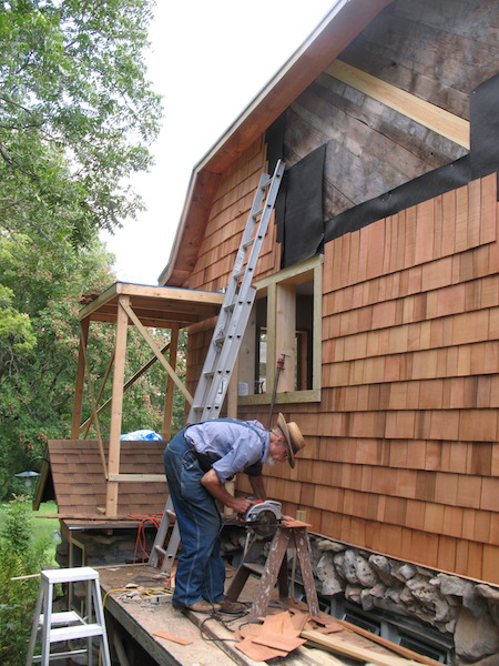 When I did most of the shingling on the house four years ago I had to buy the shingles in Wichita because Woods Lumber, just four miles from me, didn't have them for some reason I don't remember. Well, this morning I phoned Woods and found that now they do carry the shingles I need. A good look at the bundle I got yesterday confirmed that they were shakes, not the shingles I needed. So I left them in the car, drove to Woods and bought a bundle of the right ones (for $20 less than they cost at Star Lumber), drove back to Wichita, and returned the shakes to Star. All this shingle chasing has wasted a couple of days of good weather. The forecast says tomorrow will be one more good day before we sink back into normal December weather. With any luck tomorrow I can finish the little shingling I have to do on the east side of the living room before the arctic blast blows in. Thursday, December 10, 2020 Done. I nailed on the last shingle at 2:40 PM, put the tools inside, and went to town for groceries. When I got home I moved the scaffold around in front of the house where I have one last bit of shingling to do on the front of the porch. It will take just two rows of shingles, so the bundle I bought yesterday should be more than enough to do the job. There should be enough decent weather for me to have it finished by the end of the year. |