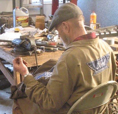 Thursday, February 20, 2014 All the morning and part of the afternoon was taken up by a trip to Wichita for a medical appointment. The doc said my low PSA level indicates no return of cancer, so I may be around awhile longer. Maybe I'll even finish a project or two before I have to check out. After a bit of grocery shoppng, I spent the rest of the day finishing a sewing job, installing a Ford patch on a new shop coat. The old coat, after a couple of years, is getting pretty ragged. Fortunately these coats cost only about $9. Friday, February 21, 2014 Another one of those days without a lot accomplished. I did a few little mundane chores like gathering a box of kindling and shopping for groceries, and a fairly long session of researching parts. This evening I removed the rear spring from the roadster because it's the wrong one (1917 & later). I'll replace it with the one I have that's right for 1915. But first I'll have to sandblast the clips and the clip bars and nuts, then paint them. A lot of the time required for restoration is spent on fasteners and other small items. Saturday, February 22, 2014 Job one was laundry, and while in Winfield I checked out an auction. There was absolutely nothing I wanted. At home I worked on those spring parts. I bent the clips to the proper width so the bars would fit them, then I set up the sandblaster and removed rust and old paint. I treated all the clips, bars, and nuts with metal prep, and painted them. I have to wait until Monday when the leather shop is open, then I'll make a proper spring pad and install the "new" spring. |