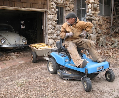 With thirty days left until spring I'm still fetching firewood. Hedge wood (Osage Orange) is especially hard, and burns slow and long. That's the one that's yellow in the picture. The softer woods burn faster. The hard and soft make a good combintion in the stove and make the room nice and warm. Whatever you're driving, backing up a trailer can be tricky. Will this be anough wood to last the rest of the season? We'll see. |