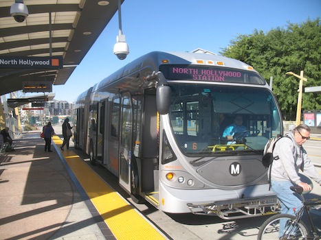 The Metro line in the Valley is a bus way built on a former railroad right of way. It goes to North hollywood where it connects with the subway. |