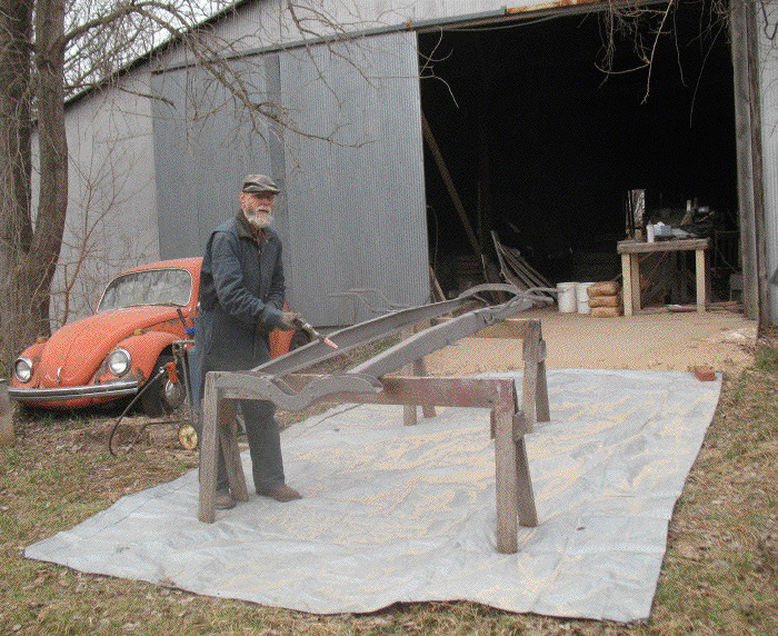 Done! The frame is sandblasted down to clean metal. I hauled it into town and left it in the sign factory where I'll have more room to paint it than I would here at home.