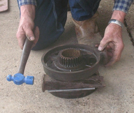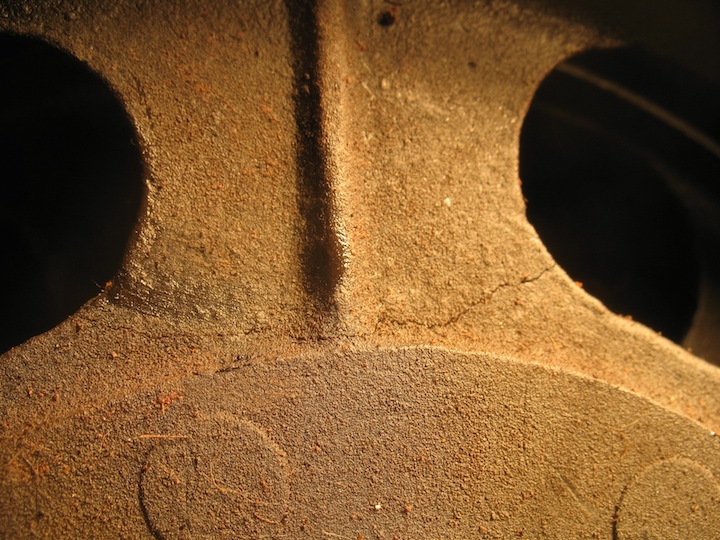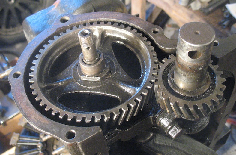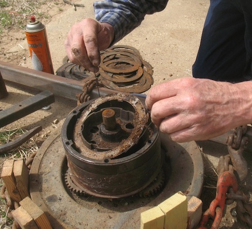 Change of plans. The reverse drum I blasted yesterday appears marginally usable, but I hoped for better. So today I dug into a spare engine I bought for parts. After removing about a peck of rodent nest, I got into the transmission. The clutch looked excellent, the low drum looked good, and the reverse drum seemed OK too, until I found the crack. Oh well, so much for that one. The drum I blasted yesterday will have to do. |