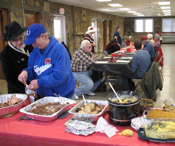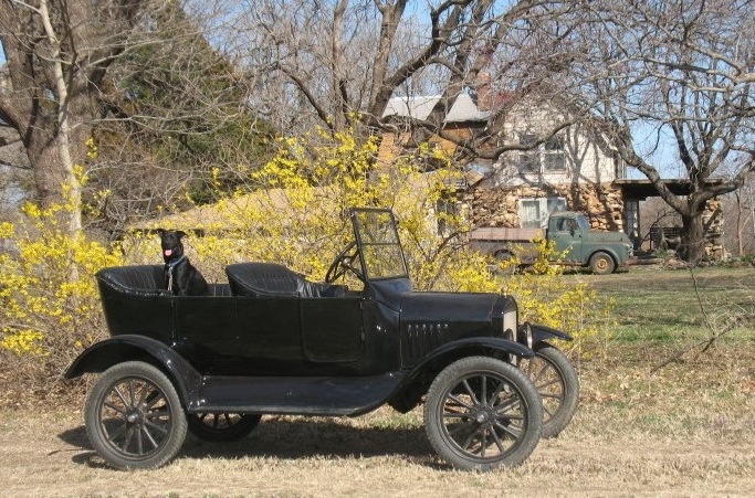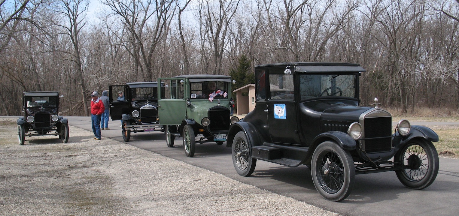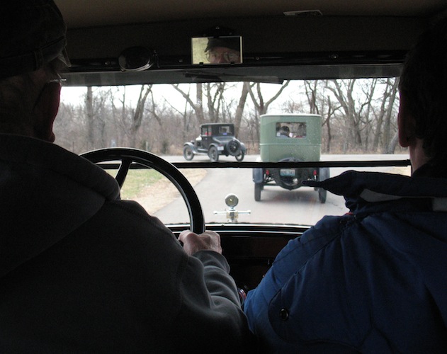 Saturday, March 22, 2014 After staying up to the wee hours of the morning making potato salad, I was off to Burlington for a meeting of the East Central Kansas T's. The occasion was observing the club's twentieth anniversary. After dining on the pot luck feast and having a brief meeting, we were off for a short tour of the area. I have no Model T ready for touring yet, so I rode in another member's 1926 Fordor. As you might expect in March, all four of the participating Model T's were closed cars. Before heading home I stopped at Bud Redding's place and picked up a Ruckstell rear axle for my TT truck project. Bud was kind enough to donate it to the cause. |