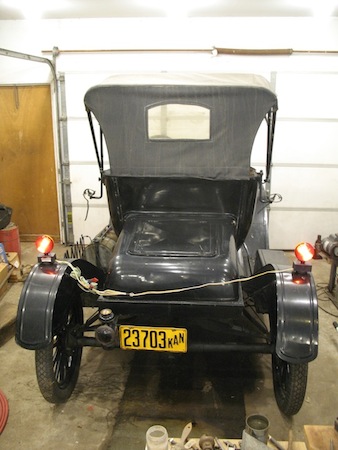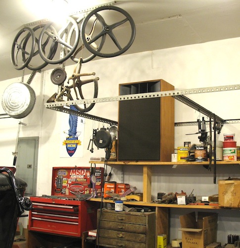 It was a chilly, drizzly day. Today's job wasn't on one of the cars, but on the shop. I set up the stereo and speakers I bought at the auction Saturday. The tuner is set to the FM transmitter that's plugged into the computer upstairs in my office. I can listen to any station in the world that's streaming on the internet. One of my favorites is XHRPA in Morelia, Michoacan. The Realistic (Radio Shack) speakers from the seventies don't really weigh 500 pounds, but for an elderly gentleman with no upper body strength left they sure felt like it when I wrestled them onto the shelf. I happened to have a roll of speaker wire with just enough left to reach both speakers, so I spent nothing on that. The Sherwood stereo cost me $7 and the speakers were $1 for the pair. |