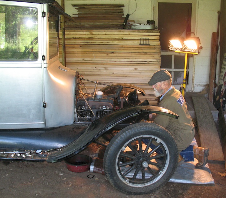 | Tuesday, April 3, 2012 The old defunct gas pipe I unearthed last fall has been lying in the yard ever since. With mowing season coming on, it needed to be out of the way. So one of today's little chores was cutting it into smaller, easier-to-handle pieces. Another piece of business was a visit by an appraiser to look over my new Fordor sedan. I'm having it appraised so I can get insurance and get it registered. Wednesday, April 4, 2012 After a week or more of early summer, today brought a return to normal early April. A little rain overnight was followed by an overcast morning and a day cool enough for me to wear a coat and a wool cap. I spent the day inside and devoted a lot of it to Model T research. But my first research of the day was looking at the 1940 census just released online. I found my folks at 1363 Gulf Avenue in Wilmington, and learned that my dad earned $35 a week as an assistant stillman at the refinery. The neighbor who worked as a cook at the cafe next door (and his wife) lived on $18 a week. Sometimes when we see the low prices of things in those years we forget how low the wages were. Thursday, April 5, 2012 There are lots of things to do, but tax day is coming soon and I haven't done mine, so this was my day to start rounding up all the papers and downloading the forms to fill out. I'll use the online services to do the figuring, but I'll file on paper. Last year I tried to file online and somehow it didn't work. By the time I found out about that it was past the deadline, and I ended up paying a penalty for being late. Not this year. Maybe I'll try the electronic thing next year and see if they've got the bugs out. Friday, April 6, 2012 This was going to be the day to register my new Model T Fordor. But the rules have changed. Now I have to take it to the Winfield PD on a Tuesday or Thursday between eleven and one to have it inspected before it can be registered. After my wasted trip to the courthouse I spent the rest of the day working on taxes. |