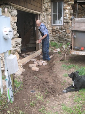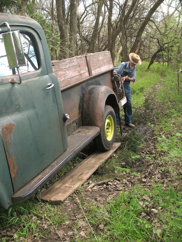 My cousin Eric was here with his daughter and grandkids. He was delighted to find that the toy train he played with as a toddler was still here. I think that was the highlight of the visit for him. We took the roadster to town for breakfast. Cassey and Ripley rode into town with me, and Eric rode shotgun coming back. He shot a video of the ride home. We took a walk down in the wood lot and I was surprised to find that he never realized that area across the road was part of the farm. It was swell having the bunch here, and we plan to do it again next month when the weather is more pleasant. |