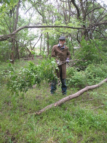 After a drive to town in the roadster for groceries and other shopping, I spent the afternoon working on the road to my new brush pile. I made good progress on that, clearing almost everything that wasn't too big for the clippers to handle, from the south end to the pile. Next I'll do the same from the pile to the north end of the road. That's a shorter distance, and shouldn't take more than a day or two. When I get my saw back from the repair shop, next week I hope, it shouldn't take more than another day or two to deal with the larger trees and branches and have the whole project finished. It will be nice to have a place to empty the truck, as there's a lot of yard waste to haul away. |
