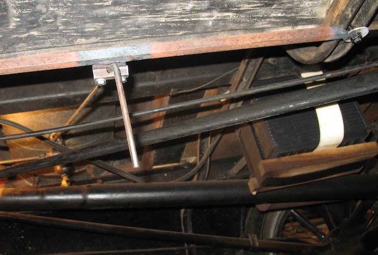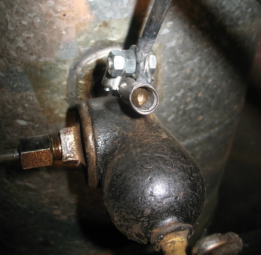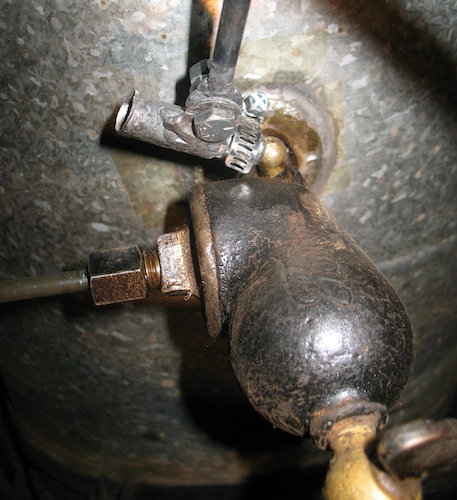 ...the valve is closed. A short piece of tubing swivels on the end of the rod, fits over the valve handle, and is held on by a small hose clamp. |