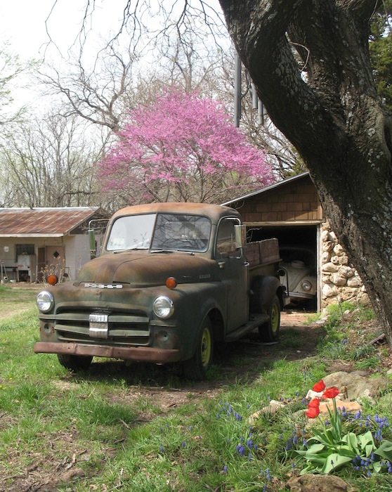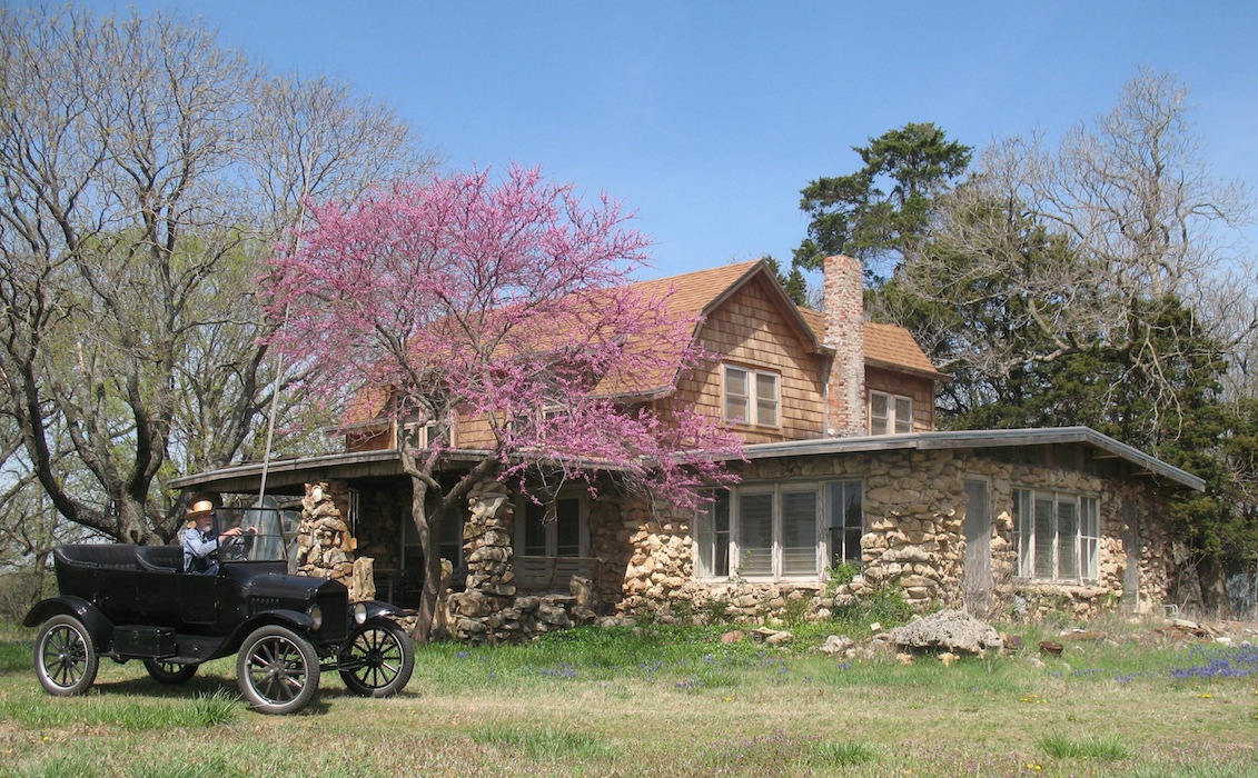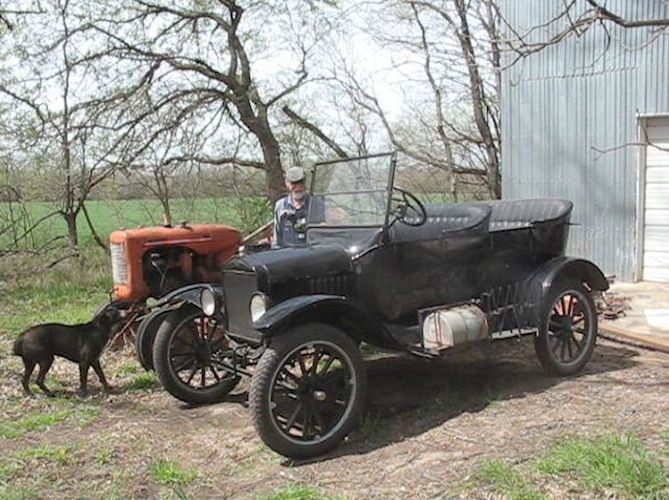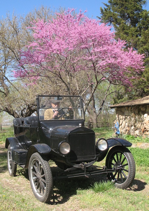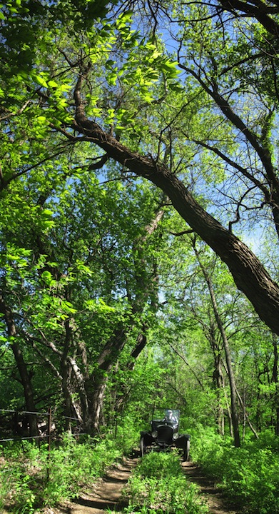 touring car beside the big cottonwoods in the wood lot, then finally