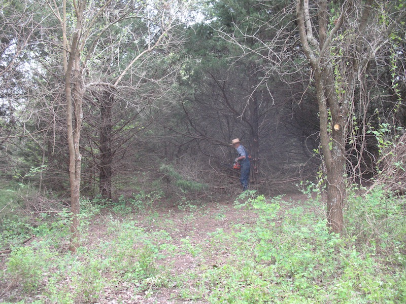 was slow going today as I cut through the next cedar grove. Actually, thicket is a better word for it.