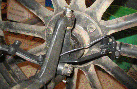 Another little TT step: drilled holes for cotter pins in steering bracket bolts.