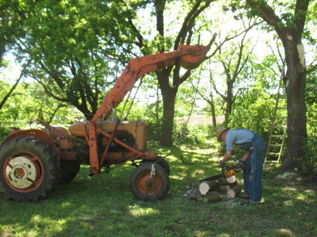 This was my day to clear a lot of wood out of the yard. First I finished bringing in three piles with the wheelbarrow and stacking all in the garage, then I went to work with the chain saw and cut up all the wood that was piled in front of the garage. That last pile was all stuff that had been badly cut by electric company tree trimmers, mostly too long and with pieces of branches sticking out. I finished woodcutting in time to take a Decoration Day walk up to the cemetery to visit the oldtimers.