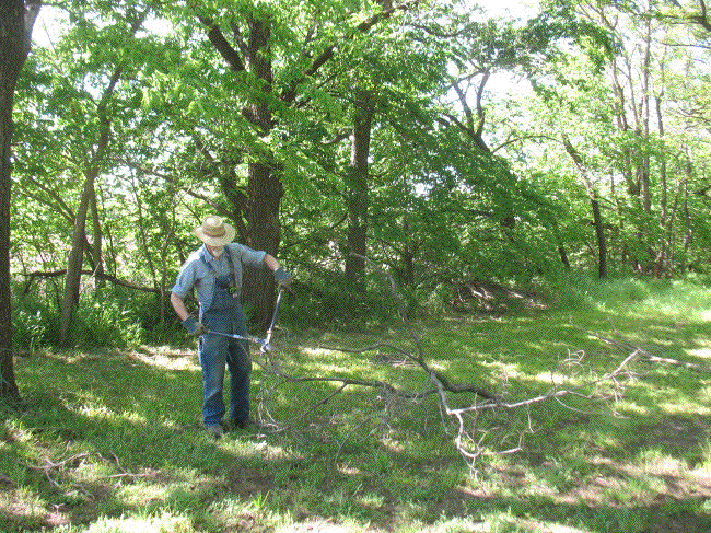 Hmmm... Looking back at yesterday's entry shows what an exciting life I lead. Well, the fun continued today. I picked up trash along the road by the west field, getting ready to mow. The battery on the tractor was down so I couldn't get it started. I put a charger on it and went to get the little mower. Its battery was down too. So I put a charger on it, and went back to the tractor. After fifteen minutes of charging, it was able to start. I mowed along the road, west of the west drive, and down the lane to the woodlot. That left just enough time to water the planting I did yesterday and Sunday.