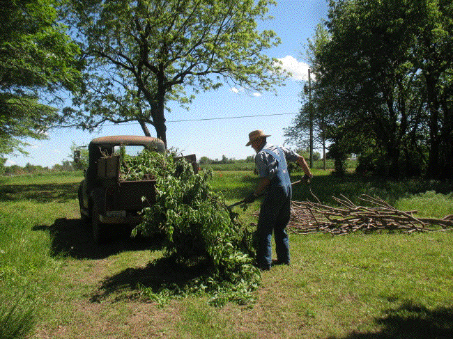 After doing laundry I checked out an auction in Oxford. There were a couple of interesting items, but I didn't want to spend all day waiting for them to come up, so I came home and did yard work. I finished most of the mowing, and cut some branches to make kindling for next winter. It's been there so many years I don't remember why, but there was a hole in the east lawn that I got tired of stepping in, so I got the wheelbarrow and hauled some dirt to fill it in. One more job was to run some water in front of the house to soften the ground for weeding. Maybe I can get the weeds pulled this week and get some flowers in there.
