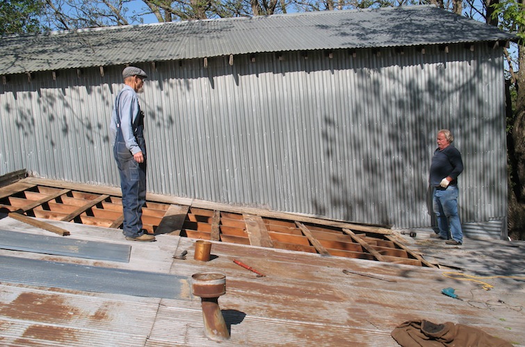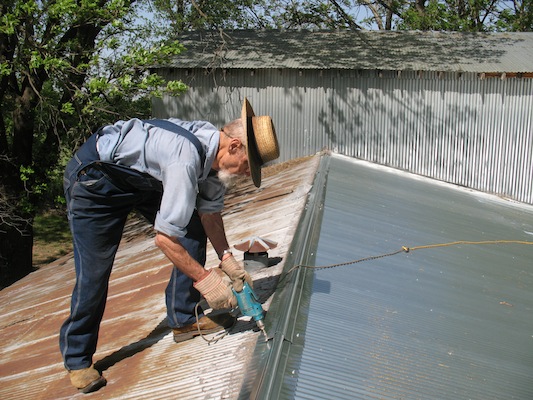 me work on my shop roof. We took off old roofing and replaced boards