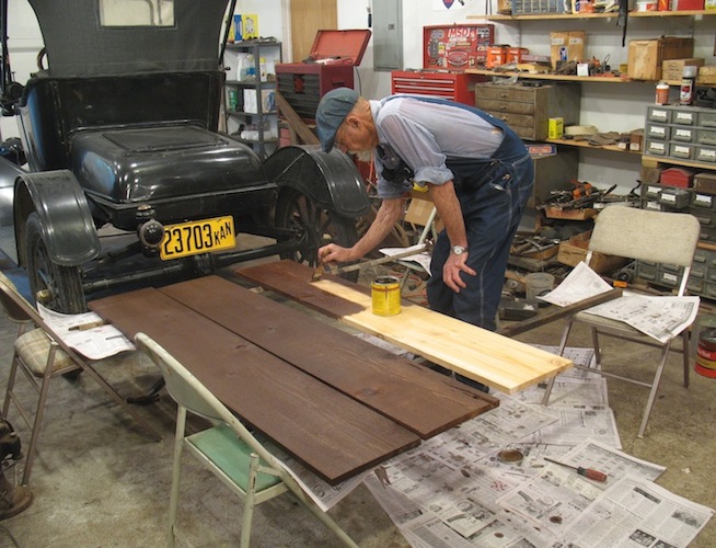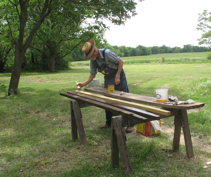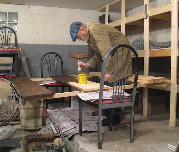 Applying wood stain.