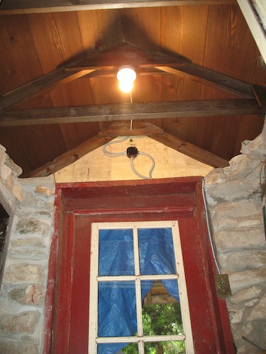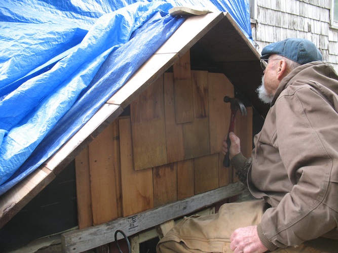 Last carpentry of the day: nailing on a temporary board to keep things in place. |