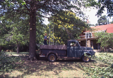 Today I got the slides from the last roll of film I shot. Along with family reunion pictures, there were some shots of tree trimming and hauling away branches.