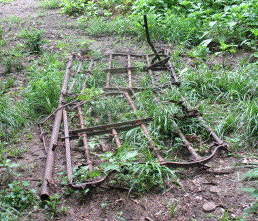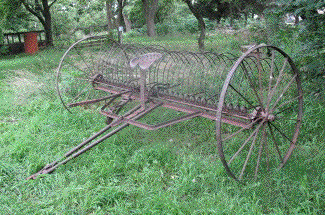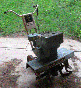 Today I went to an auction that was the opposite of some other recent ones. Instead of things going for surprisingly high prices, today was bargain day. After spending $137.50, I came home to draft a volunteer cousin and get transportation. Shane and I took the suburban and the trailer and brought home these bargains: spike tooth harrow ($35); running and working Sears 8hp tiller ($52.50); working dump rake ($50). Some even better deals that went to other bidders included more than a cord of hedge firewood for $2, a nice running Case 860 tractor for $2400, and the one I thought was a real shocker, a running, working John Deere Model 95 combine for $175.