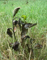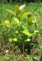 A day later those little trees seem to have suffered a major setback. The leaves that received the direct spray have turned brown and shriveled. The question is whether the poison will get the other leaves and also get down into the roots.