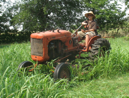 It was a long and busy day. The first job was to attach chains and cable to the old TV antenna mast that stood east of the house and pull it down with a tractor. Then I brought out the tanks and cutting torch and cut it into pieces light enough to move to the scrap pile. When Jo and the boys came I used the cable and chains to pull down a big dead tree, then the boys and I cleared the debris off the lawn while Jo weeded around the house. The next job was using the loader to haul a pile of dirt from behind the house to fill holes in the front drive. Next Tyler and I cut off a lot of little trees that were in the way, and poisoned the stumps. After we put all the trimmings in the truck and hauled them to the dump pile, I showed Chad how to run the Model B and Tyler how to run the Dixon mower, and the boys mowed. The last activity was taking each of the boys for a ride in the roadster. We put in a full day and got a lot done.