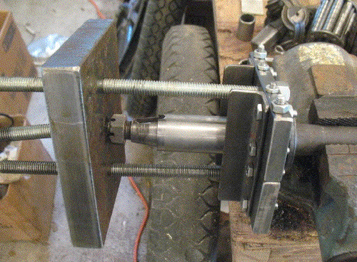 Today I worked on carburetor repair while the electric saw worked on a one inch thick piece of steel for the puller. I made a video showing how to fix a damaged carburetor spray needle: http://www.youtube.com/watch?v=uTiStUTU9IE. After the big chunk of steel was cut, I drilled it and tapped one of the holes, almost finishing the puller. I have to make one more piece in the morning, then I can try it out.