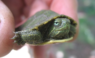 This morning I was off to Wichita for a dental adventure. I've been bothered my an infection that lay dormant most of the time, but every few months would flare up and get sore. My dentist sent me to a specialist who did some root canal work this morning. If I'm lucky, he dug out everything that was causing the problem. While I was in the big city I did a little shopping, then did a little more on the way home. By the time I got home it was after three, and I spent the rest of the afternoon slaughtering Johnson grass. If there was a market for that stuff I'd get my exercise hauling money to the bank. I sprayed along the road by the west field and got done a little more than half of what I need to do. On my way out to spray I found a little turtle in the west drive, but not the painted box turtle that's so common here. This little guy was more like the ones they used to sell in dime stores. |