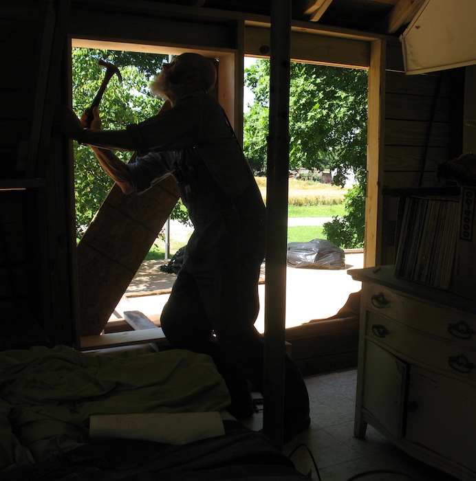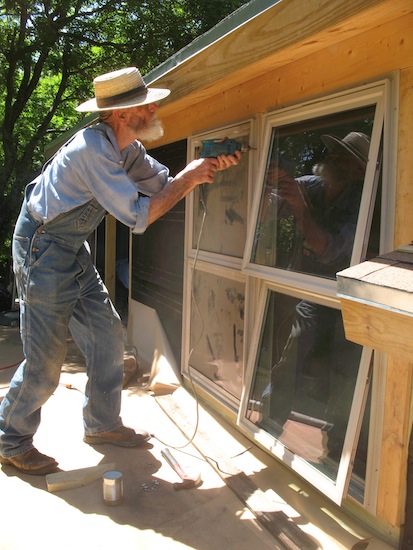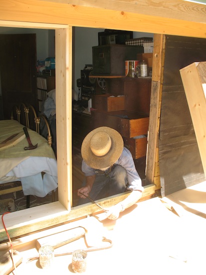 June 10, 2013 I thought if I could get the first window installed by noon, I'd be a happy camper. I started gathering tools early, and I was at the lumber yard just as they were opening at 7:30. I spent the morning cutting and assembling the first frame, and had it installed by eleven. The second frame went faster, and I had it installed by two, and by three both windows were in. The only hard part of the project was lugging the windows out of the garage and up the stairs, as they're pretty heavy. As for the windows themselves, I'd like them better if they would open farther to let more air circulate, but I suppose it's unrealistic to expect today's products to measure up to what was available fifty years ago. Tuesday, June 11, 2013 I thought I'd have the other two windows in by noon, but the rule still applies: everyhting takes longer than you think it will. Especially when you screw up your measurements and cut boards too short, and have to go to town for more. Add to that the fact that very few things on this old house are straight or square, and there's a lot of fitting and improvising to do, and instead of noon you finish at almost five. I was going to clean the kitchen this afternoon, so that awaits in the morning. |