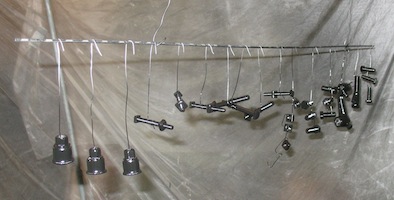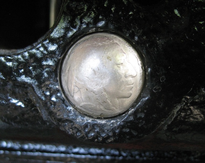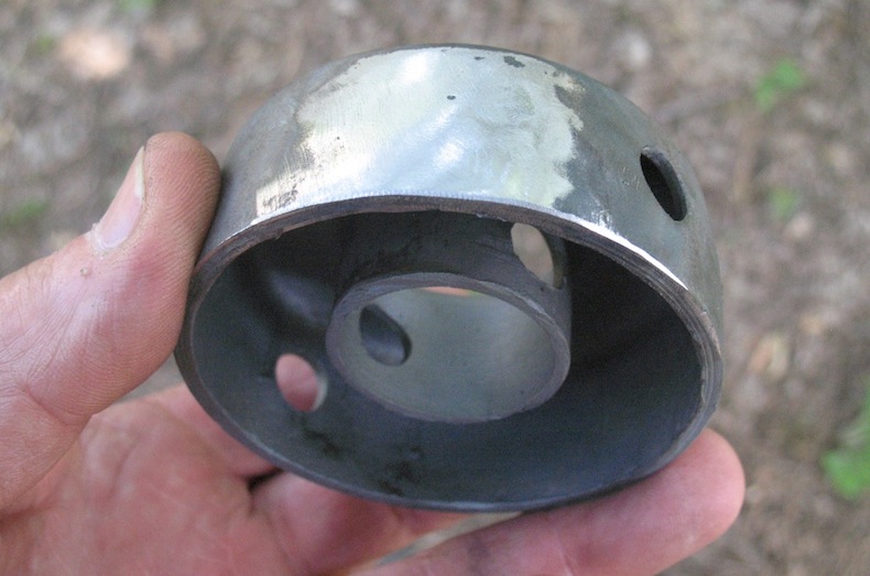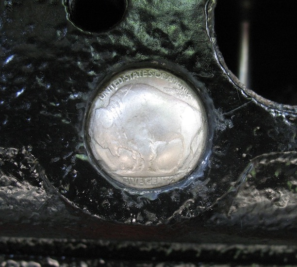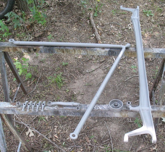 This morning I cut a piece out of an old tire, made a spring pad, and installed the spring. My afternoon jobs incuded polishing the block with Nu Finish to turn flat black into something close to satin, bolting the inspection cover to the pan and hoping I used enough Permatex to prevent any leaks, and blowing loose scale out of the water passages. Sunday, June 2, 2013 It was a good day for sandblasting, but I didn't get a lot done because I got a late start. I found that I'd clipped the blaster when I put the mowing tractor away the other day, and broke an air fitting. I had to go to town and buy a nipple to fix it. |