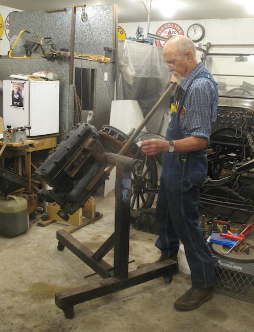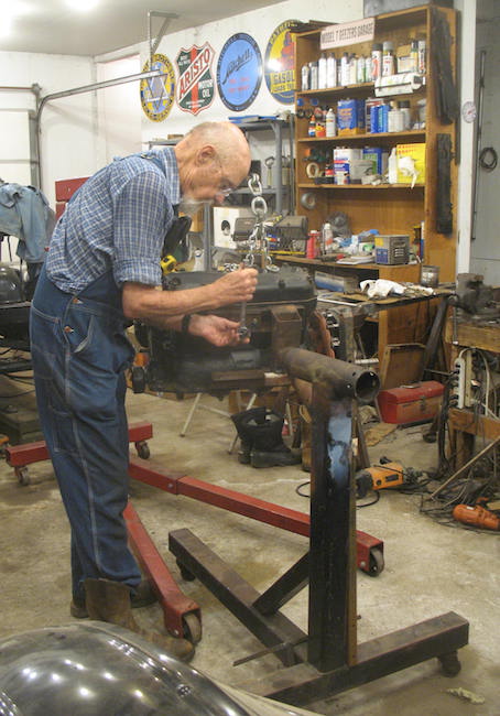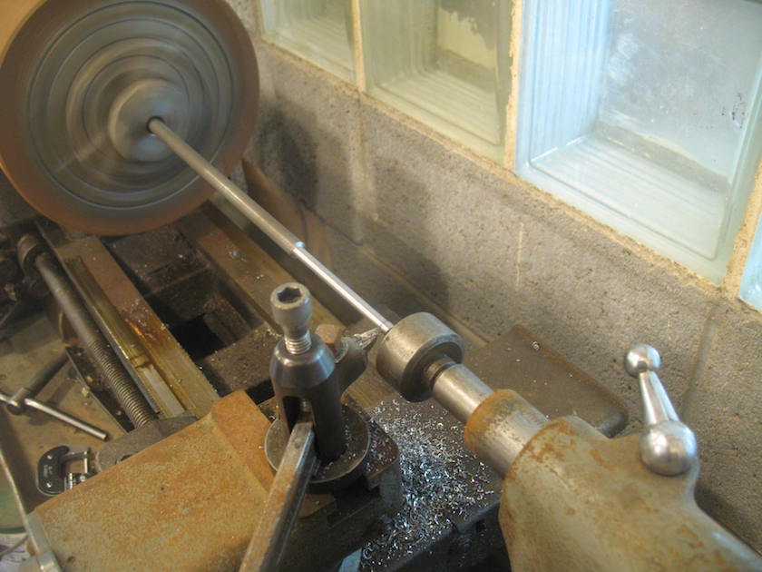 Dumb, dumb, dumb. I thought I ran that sprinkler for a couple of hours last night, but when I looked out there this morning it was still going as the rain fell. With the sprinkler running all night and a pretty good rain this morning that ground is well soaked, and I expect my water bill will be higher than usual this month. Anyway the weeds will be easy pulling. In the shop I did a little machine work. I'm not a skilled machinist, or even an unskilled machinist, but I did turn down some 3/8" round stock to 7/32" for a pair of rivets to go in the windshield frame of the runabout. I'm replacing the upright that rusted through and broke. I intend to recruit a helper to hold a torch on the rivets and keep them soft while I mash them down. The new battery I ordered for the runabout last week arrived today, so maybe tomorrow I'll install it and see if I can get the car started. I need to finish the windshield and take up some slack in the top, then I should be ready to drive. There are some other things I want to do to the car, but they don't have to be done before I start driving it again. |