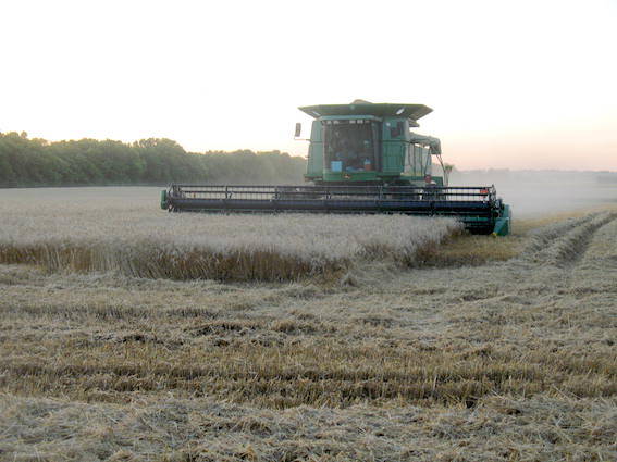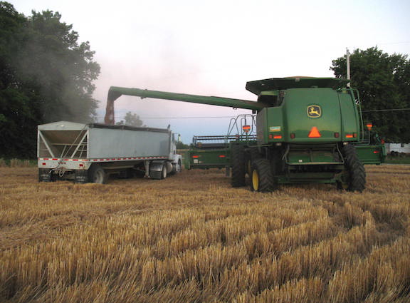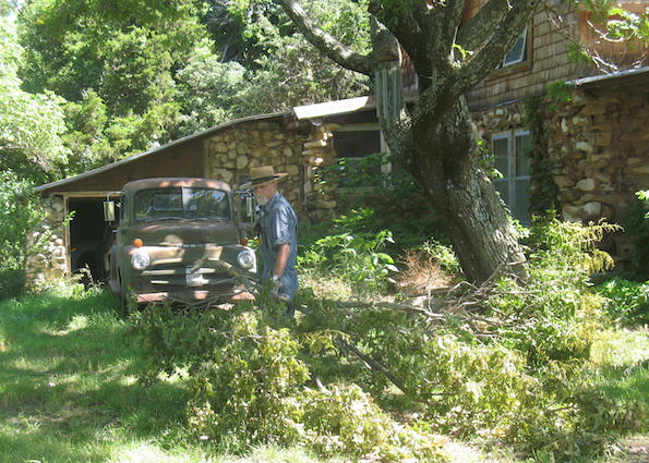 | Monday, June 14, 2021 I spent most of the morning removing fallen branches from west of the house and in front. I started a couple of big piles out behind the shop. Next winter they will be a ready source of kindling. The blue tarp is keeping weather off the scaffold I'll use when I reshingle the front of the porch. In the evening Phillip came to cut the wheat. Soon I'll be rich. Well, maybe not. The current price is only $6.14 a bushel. Some years the crops pay enough to cover property taxes and insurance. This year? Probably not. They used to haul the wheat to town in pickups and one or two-ton trucks. Now, look. Tuesday, June 15, 2021 Again I started the day moving fallen branches to the piles behind the shop. Some of these were from the ice storm last October, and some were more recent. With the piles of branches out of the way I brought out the tractor and mowed both areas. In the afternoon I got back to work on the runabout. I removed the radiator so I could get to the front cover and replace the cam seal which had come loose, and I found that the timer rotor was both backwards and broken. I reinstalled the seal with some Ultra Black to hold it. I'll install a new rotor, correctly this time, then I'll have to pull the steering column and fix the wobbly timer control lever. It seems the fun never quits. |