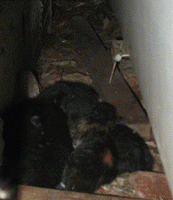 Miss Kitty has been looking pretty fat around the middle lately, but while I was at work today she went on a crash diet and thinned down a lot. When I came home I found a kitten on the steps to the west porch. It turns out that she picked a good place to have them, behind a pile of boards leaning against the wall in the garage. It's a safe place out of reach for any neighbor dogs that happen to wander in. It's hard to see the kittens in there, but I think there are at least five of them.
