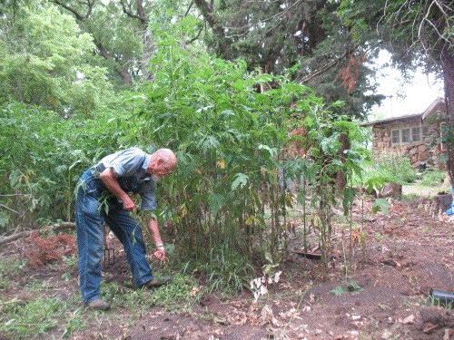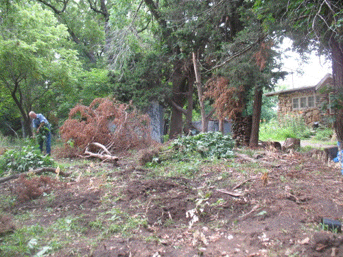 Recent rainfall has moistened the ground without making it soggy, and the daily high has cooled off into the low eighties since the 100º+ earlier in the week. I took advantage of the opportunity for a couple of hours pulling weeds this afternoon. I made a pretty good dent in the weed supply, and the forecast for tomorrow is for more of the same, so I may have this chore pretty well finished before long.