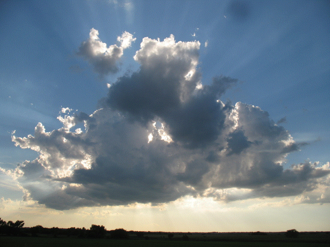 Friday at the swap meet I took notes on possible purchases and their locations. On Saturday I visited the car show, then went back to the swap meet and bought some of the items I found Friday. Saturday evening we dined at the Hong kong buffet, then went to a fireworks display by the Wisconsin River. The fireworks were a week late because of a rainout on the Fourth of July weekend. It was a good show. Sunday morning I headed for home at 4:49 AM. I spent the day driving, and arrived home at 7:56 PM. I found one of the best views of the trip Sunday evening when I got back here to Cowley County.