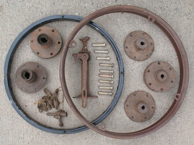 It was another good day at the swap meet. I saw some interesting cars for sale, and was not in the least bit interested in buying any of them, as I'm out of space, time, and money for any more vehicles. A customer from many years ago when I owned the sign business had one of my signs hanging in his tent. He had it up for decoration, not for sale, but I've seen some of my signs for sale at swap meets for shocking prices I'd never pay. I continued my lavish spending as follows: a gorgeous Hayes felloe, almost like new, for $5; a repairable Hayes clincher rim, $5; three rear hubs and two front hubs, $1 each; another Model T screw jack, $5; over half a dozen good drag link caps and an Apco cap, $2.50; and nine valve stem covers, $1 each. But the best find of all was probably the guy who deals in old Dodge truck parts. He thinks he has a replacement rear axle shaft for my truck. After trying every source I could find online and coming up empty, it was quite a stroke of luck running into this fellow. I really want that truck running again so I can use it to haul away branches, pulled weeds, and other yard trash. Things have been piling up. |
