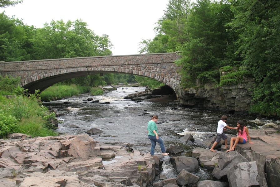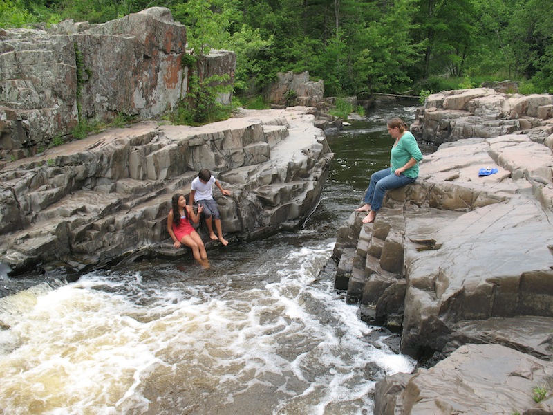 The big activity of the day was a visit to the Dells of the Eau Claire River, east of Wausau, with Elizabeth and the kids. Austin and Bella being high energy people, they had a grand time climbing over the rocks and playing in the water. Wisconsin in the summer is beautiful, with lots of green fields and forest and blue skies. We all used bug repellent, but I'm not sure we needed it. Even with all the water around, I didn't notice any mosquitoes. |