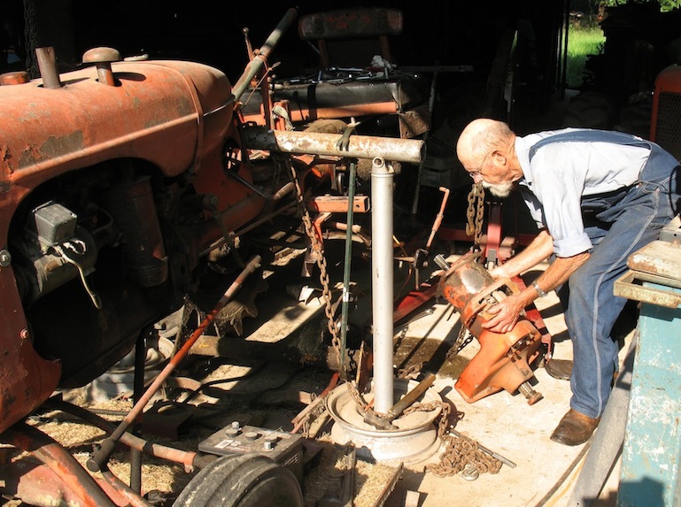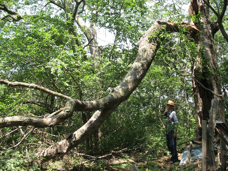 My morning work was getting that defunct final drive off the tractor and trying to get the thing apart. I don't have a shop manual, so I'm going by the illustrations in the parts book to figure out how to proceed. It turns out that I'm going to need at least one wrench that's bigger than any I have. I'll see what it costs at the farm supply, but it will probably be better to borrow or rent what I need until I can buy some used oversize wrenches at an auction. I hate to pay retail if I don't have to. I hate to pay retail even if I do have to. The afternoon was a bit too toasty for working in the barn, and I went grocery shopping and took a nap. While the temperatures above 95º persist, I want to do as much as I can early in the morning before the heat builds up, so I'm napping in the afternoon and evening so I can get up before the crack of dawn. A nice discovery today was a huge fallen branch that will make a lot of winter firewood. |