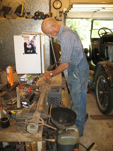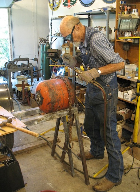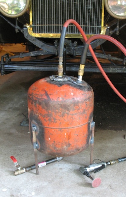 | Saturday, July 28, 2018 When you're using air tools and water squirts out of them it's annoying and bad for the tools. So today I adapted an air bubble to serve as a water trap. I added legs, in and out connectors, and a drain valve. When I tried it out, it actually worked. So the project was time well spent. Sunday, July 29, 2018 Today I mounted a new tire. This was a replacement for the tire that blew out and disappeared in Butler County a couple of months ago. When that happened I fetched a spare wheel from home, and it's been on the car since then. Actually putting the tire on the wheel took four minutes. Removing the rubber valve stem from the tube and installing a metal one took over half an hour. It was nice having dry air to do the job. |
