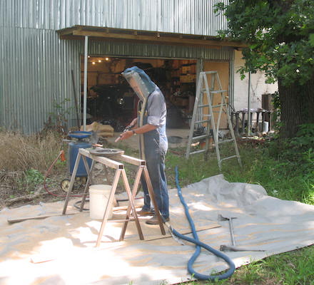 Never went off the place today. First up was spraying again. What I did last Tuesday south of the road was effective on grass but most of the broadleaf weeds were unaffected. So I mixed another 9½ gallons and doubled up on the active ingredient and hit them again. I'll find out in a few days if the new mix does the trick. I finished about a quarter after eleven and outside work was sweaty enough to send me inside. I worked in my office testing and adjusting Model T coils. They were good coils, but all needed some adjustment. I took the best four and put them in the runabout. Since we tow-started the car last week to seat the new rings it has been easy to start, but has run rough. I thought that might be due to coils needing adjustment, but that wasn't it. Adjusting the coils so they checked out good or excellent on every test didn't make the car ru Tuesday, July 13, 2021 The first exciting adventure of the day was sandblasting. I blasted the lower windshield frame for the 1915 runabout and shot it with primer, then started blasting the "new" flywheel for the 1923 touring car. I quit that a little after noon to do some research on parts I need to order. After grocery shopping I went to see Dave the small engine repair guy to see if he still does that work. He does, and I'll take that "ran when parked" Dixon mower to him in the morning. This afternoon I was pleased to note that the weeds I sprayed yesterday are already starting to wilt. The forecast is showing a good chance of rain Thursday night. After that I'll spray what I missed yesterday. |