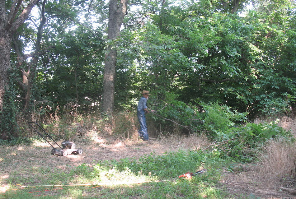(foreground) to bring down some branches that were too