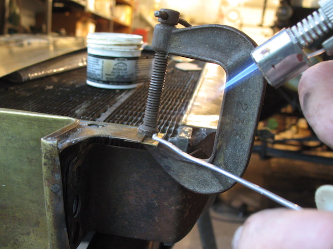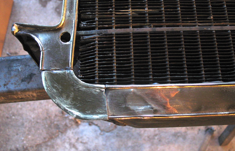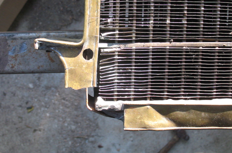 Rain that started in the wee hours was still falling when I climbed out of the sack, and kept going lightly until afternoon. In the end there was another 1" in the gauge. I got back to work on the radiator, buffing some scratches and a little solder that had found its way into wrong places, and soldered on the brace that had come loose with the left side panel. I still have to make and install a replacement for the bit of brass trim that got lost from the lower right corner. I have an idea of how to go about that, and I'll find out tomorrow if I can actually do the deed. Other notable events today were a call from a cardiologist's office letting me know I have an appointment to see him a week from today, and the Arkansas City Municipal Band's final concert of its 153rd season. Friday, July 7, 2023 Today's all-day project was making and installing that replacement piece of radiator trim. In fact, at quitting time I wasn't done with it. So I came back after dinner and finished it up. Could it be better? With the right tools and more skill on my part it could be a LOT better. But it will have to do for now. Maybe I'll come back to it later. |