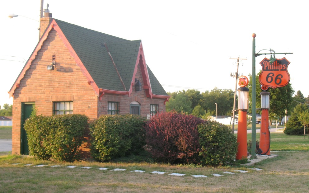 | Wednesday, August 8, 2012 Well, not exactly humdrum. I set out on a road trip to Rockford, IL, for a sale of Model T parts. There was a nice big rainstorm east of Des Moines. Thursday, August 9, 2012 I made it to Rockford in the morning, bought about 500 pounds of carburetor bodies and other parts, and headed home. At Creston, Iowa, I found the Frank Phillips Visitors' Center, a 1931 Phillips station. |
