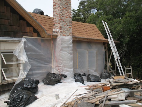 By 4:15 I had about two thirds of the old asphalt shingles off,