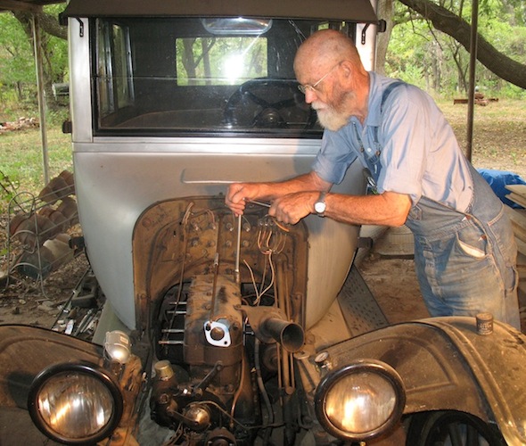 Thursday, August 16, 2012 Today I installed a new insulator and a copper gasket in that spark plug and put it back in the car. I drove to town for groceries and it was fine, so we'll see how long it lasts. My other project of the day was study. I spent a good chunk of the afternoon reading Murray Fahnestock and Bruce McCalley on transmission bands, as I'm going to need to install new ones before long. Friday, August 17, 2012 This morning I drove the touring up to the fairgrounds to help with registration at the antique tractor show. Coming back to town, once again I heard the telltale sound of a broken spark plug. Running on three cylinders the car didn't have enough guts to make it up the hill to home. A neighbor was driving by and gave me a ride home. I had just enough time to get a good plug to take back and install before I went to the first session of my machine shop class. By the time class was over at 3:00 the touring was rested and ready to run. I drove it home and walked back two miles to get the Camry, and that was my day. |
