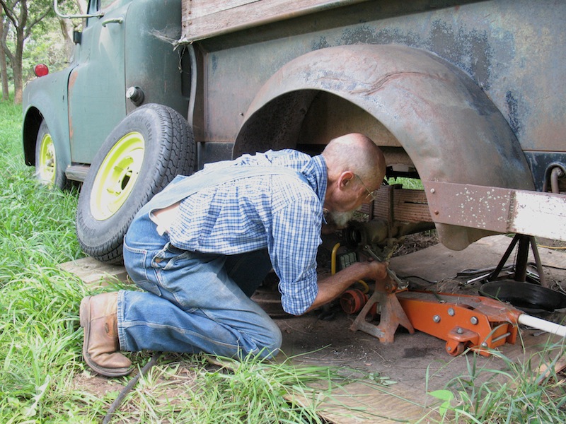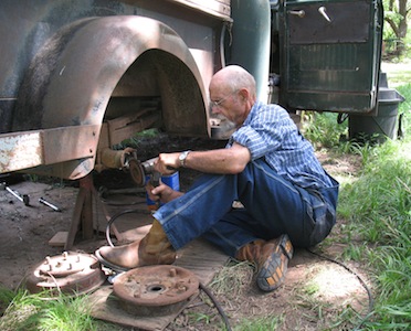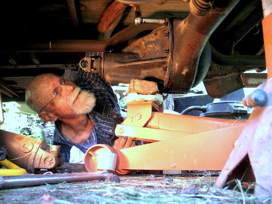 I'd like to plant some hollyhocks west of the garage. The afternoon sun there would make it a good place for them. But first I have to get rid of the chives that have taken over the area. They're so thick that their roots are tangled together to form sort of an onion-scented sod, so getting them out and getting the dirt off the roots is slow going. I'll have to work on that job a little bit each day until I have them all out. The chive removal went on until about eleven, then I moved on to the truck. I found that both grease fittings for the rear wheel bearings were broken, so I removed those and installed some new zerks. But the biggest job of the afternoon was cleaning up the differential and housing, then making a new gasket to fit. The ring gear has pits, and if I had any intention of driving the truck a lot I'd try to find a better one. But this truck is almost exclusively for work here on the place, like hauling firewood and yard waste. That won't even amount to 500 miles a year. I expect that gear will outlast me, so I'm not going to worry about it. |